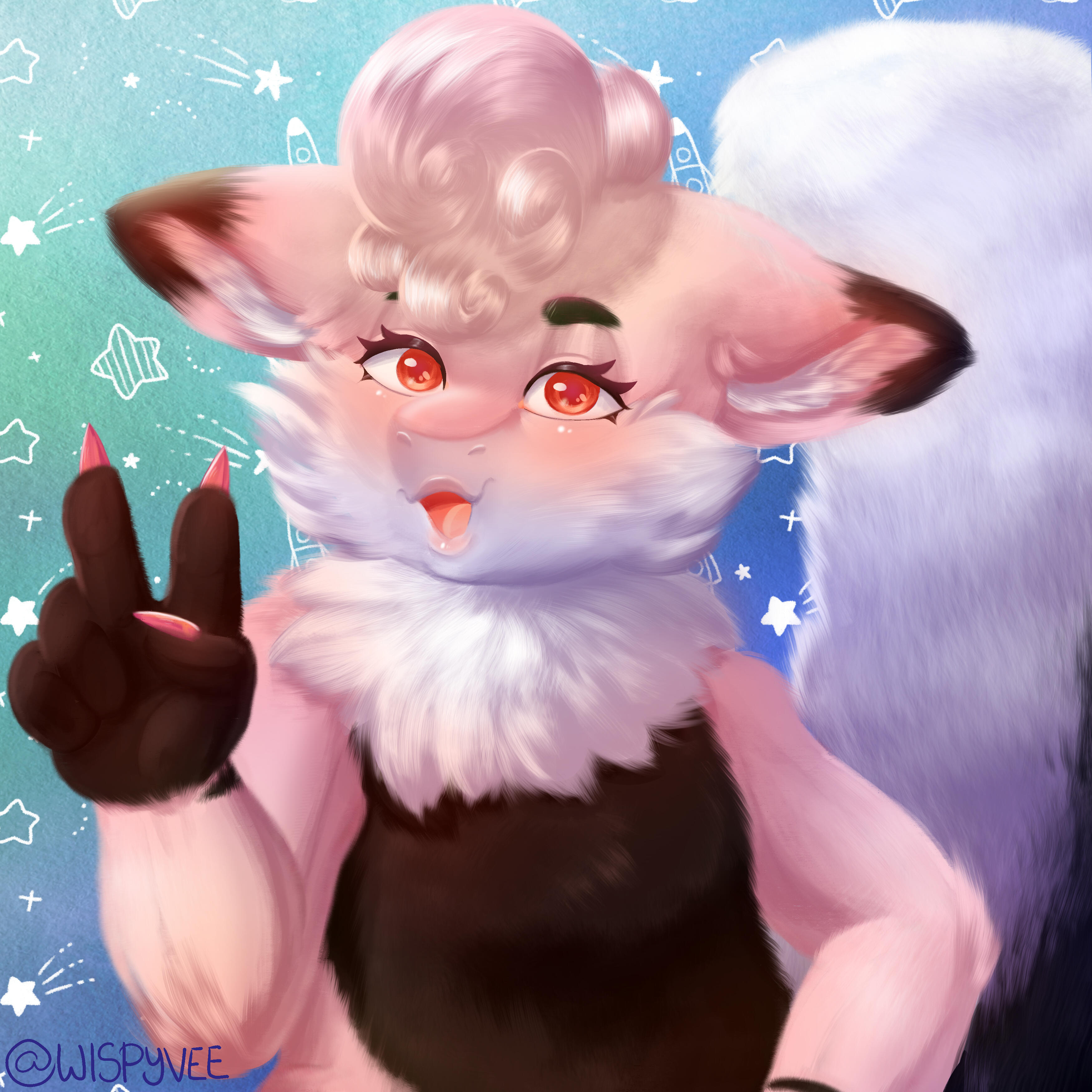 Hi! I'm Vee, or Wispy, Or WispyVeeI'm a peruvian freelance illustrator based in the US! My main trade is Illustration, character design and pixel animation, among a few other things.I have done plenty of commission work for several private clients, as well as game developers and streamers. Check examples in my gallery!